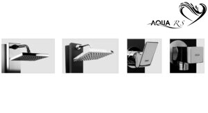 • Difusor articulável, com 200 mm, quadrado, com sistema de filtração anti-calcário.
