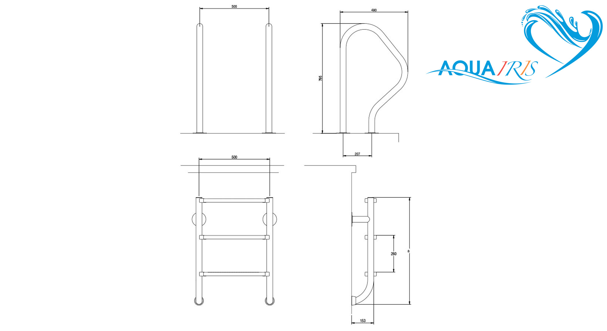 Escadas para piscina em aço inoxidável polido AISI 316, Ø 43 mm
